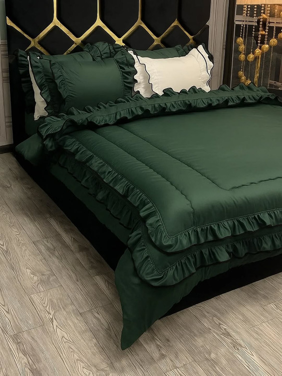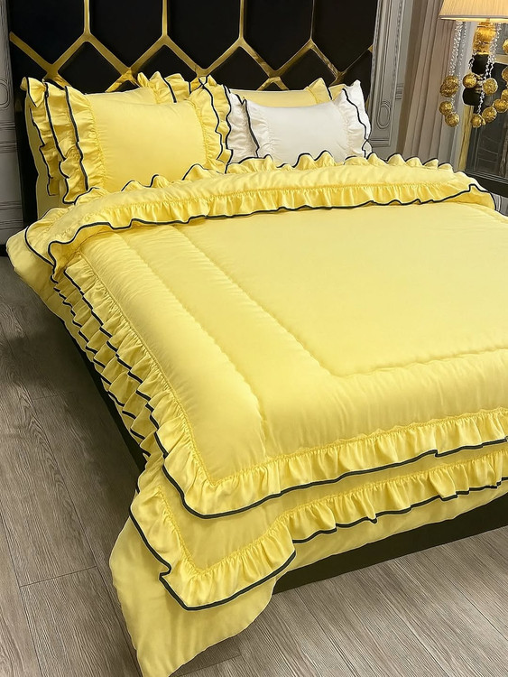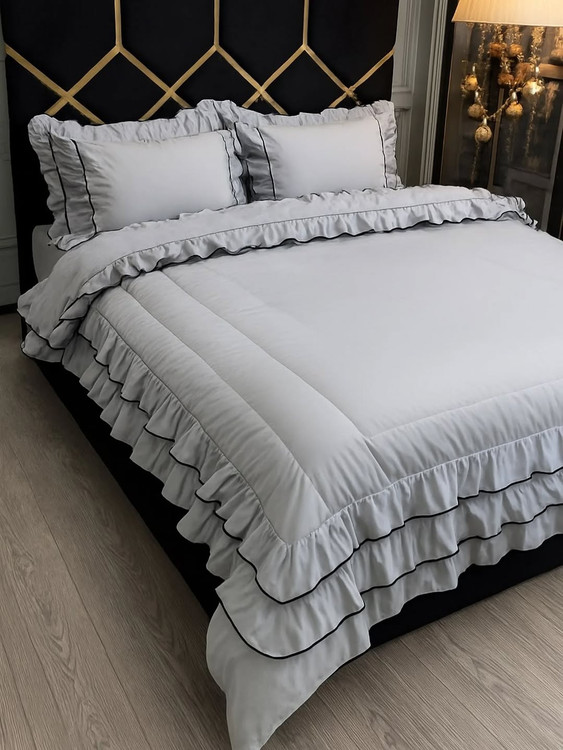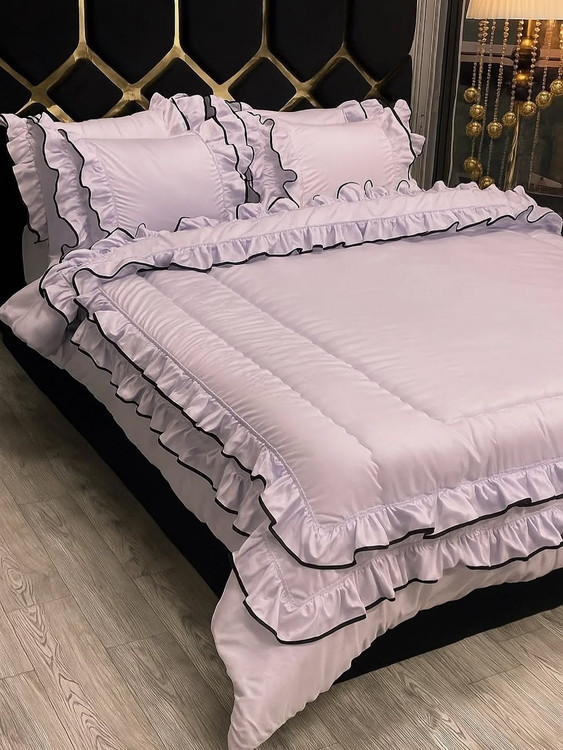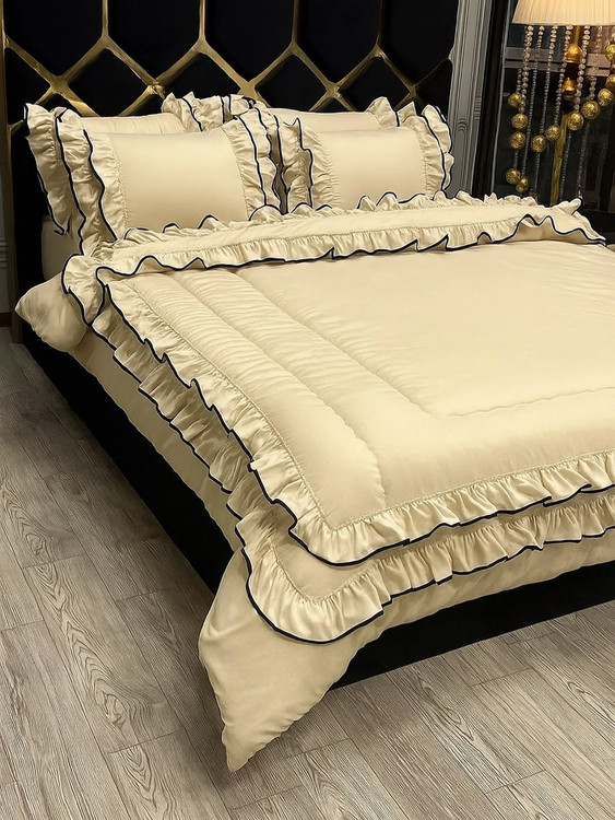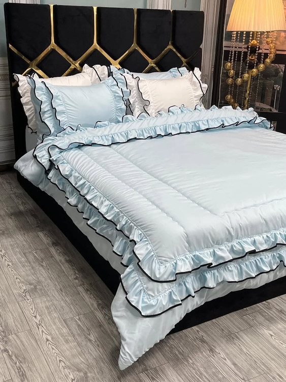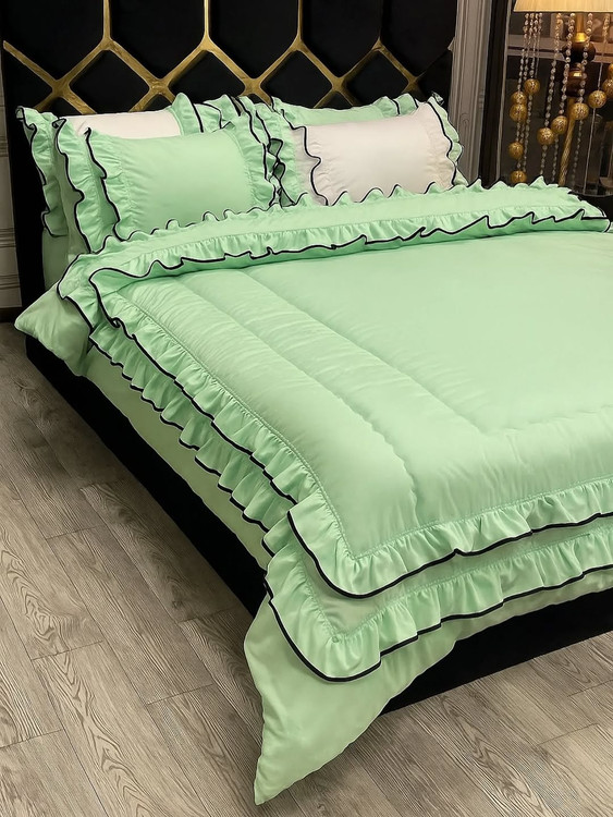 دونفره شش تیکه:دوتا روبالشتی چیندار دوتا روبالشتی لبه دوزی شده لحاف و کاور تشک